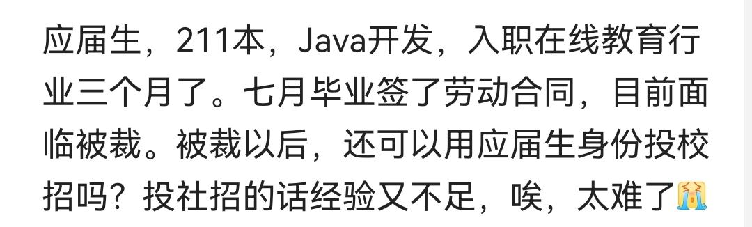 这次裁员潮释放的人才太多,应届生在社招市场竞争力太弱。