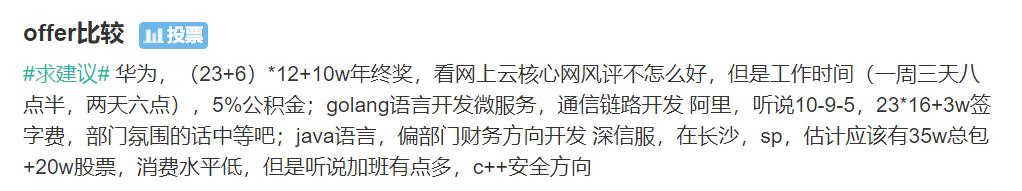 某求职备考网站上,秋招期间最热门的就是offer比较帖。