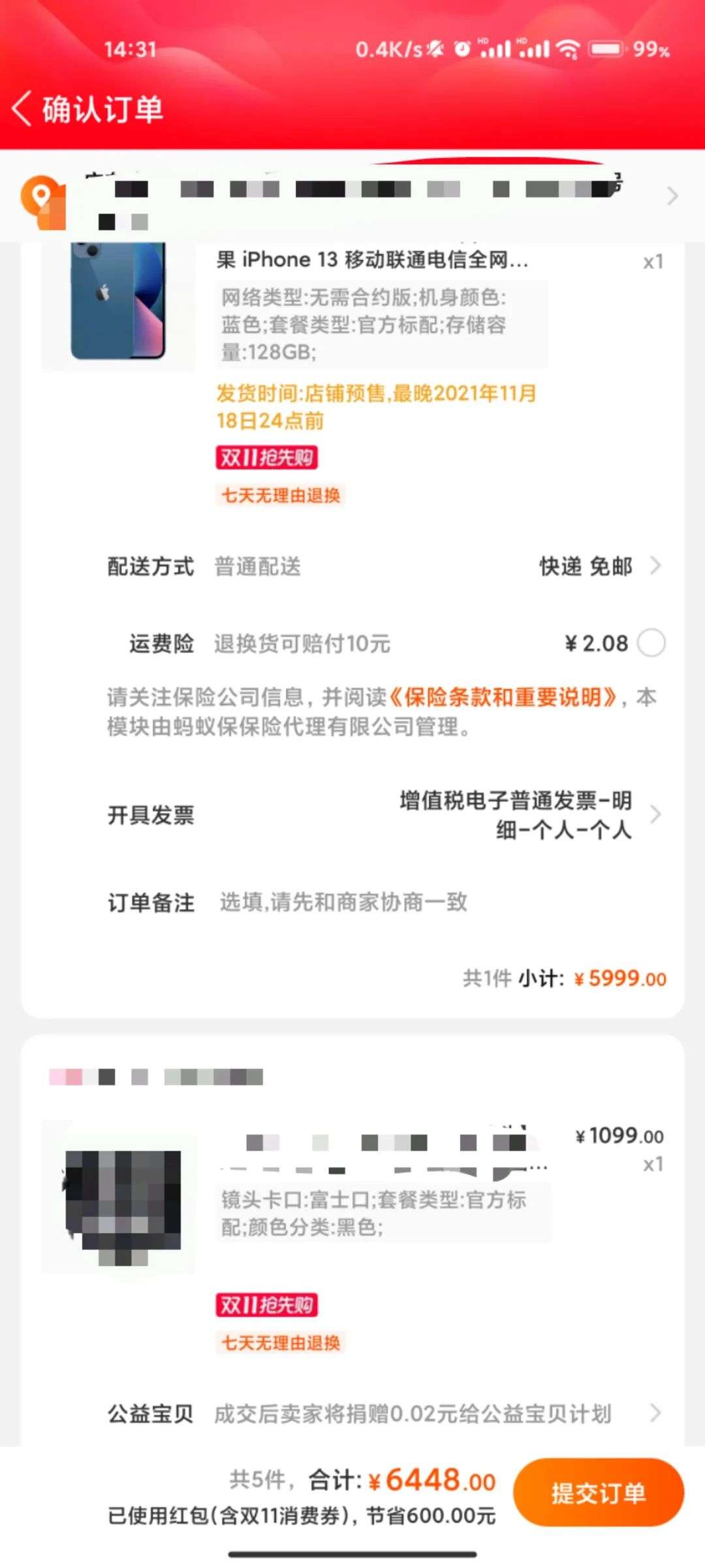 当然,这些优惠券都可以通过凑单的方式来使用,举个例子,小雷在苹果旗舰店中购买了一台iPhone 13 128G版(价格5999元),此时再另外购买801元的商品就能使用满6800减600元的优惠券,换算下来就是5399元。256G/512G版本的则只需要多购买1元的凑单产品,即可用6199/7799元买到手。iPhone 13 mini同理,如果不使用凑单的方式最多只能优惠300元,到手价分别为4899元、5699元以及7299元。