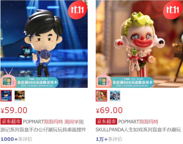 京东上的泡泡玛特周同学周游记系列盲盒,评价数是SKULLPANDA人生如戏系列的1/10