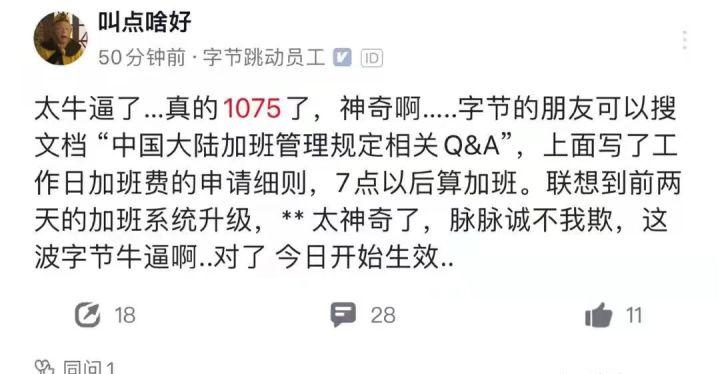 以字节跳动为例,依据昨天网上流传的消息,1075工作制从11月1日开始生效。