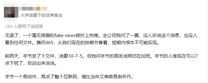 先是字节跳动曝出1075(10点上班,7点下班,一周工作5天),再是腾讯也被传实行965(9点上班,6点下班,一周工作5天)。