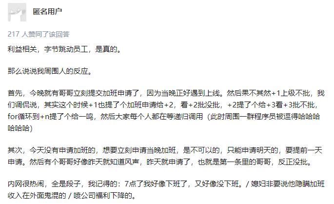 而在知乎多个关于“字节1075”的话题下,也有不少员工前来通报自己1、2号的工作情况,无一例外的都是加班: