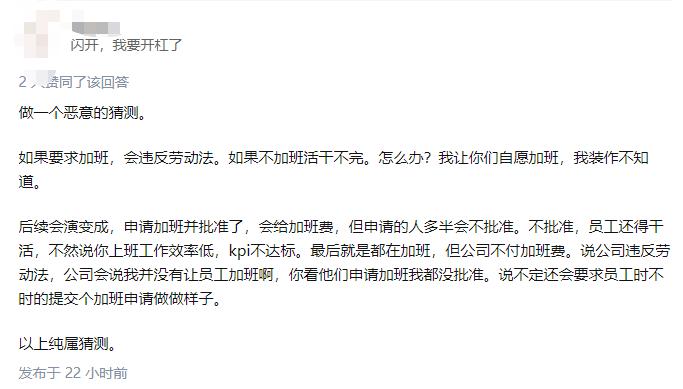 与此同时,与欢呼雀跃不同,不管是大厂员工,还是厂外网友,对于新工作制的是否执行基本都是持有悲观态度。