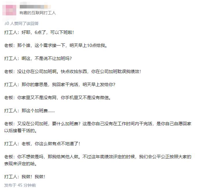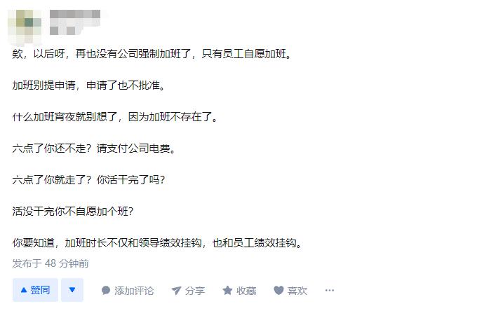 就如前面就有人提到“申请加班,领导不批”,但是不加班工作完不成怎么办?最终带来的结果可能就是“自愿加班”了,甚至是在家“无偿加班”。