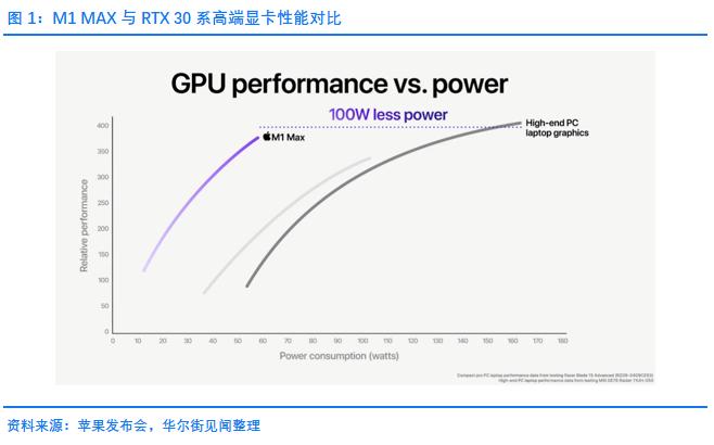 此外,苹果公司也在近期异军突起,其最新发布CPU的图形性能,可以在功耗大幅降低的情况下接近30系高端显卡水平。在M1 Max的强势表现背景下,在创意设计工作领域,尤其是视频制作等领域,高功耗的英伟达显卡似乎不那么具有吸引力了。