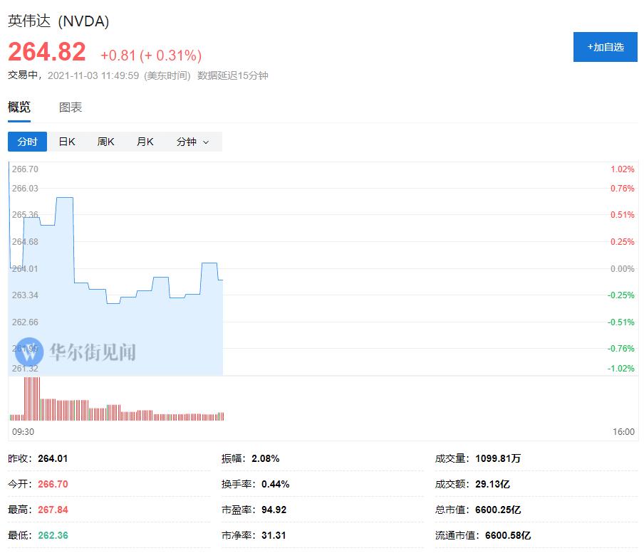 周三开盘,英伟达股票继续小幅上涨,截至发稿,涨0.31%,总市值达到6600.25亿美元。