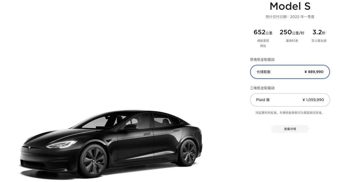 10月27日,特斯拉中国官网显示:Model S长续航版、Model X长续航版价格均上调3万元,当前最新售价分别为 88.999 万元、93.999 万元,预计交付日期均为2022年一季度。据统计,自今年1月28日起,现款Model S长续航版涨价幅度已经达到9万元。