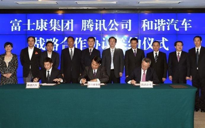 拜腾汽车虽然是在2017年年底才成立,但是它的前身却可以追溯到2015年。在2015年,和谐汽车、腾讯、富士康三巨头聚首,三方按照3:3:4的出资比例成立了河南和谐富腾互联网加智能汽车电动汽车合伙企业。
