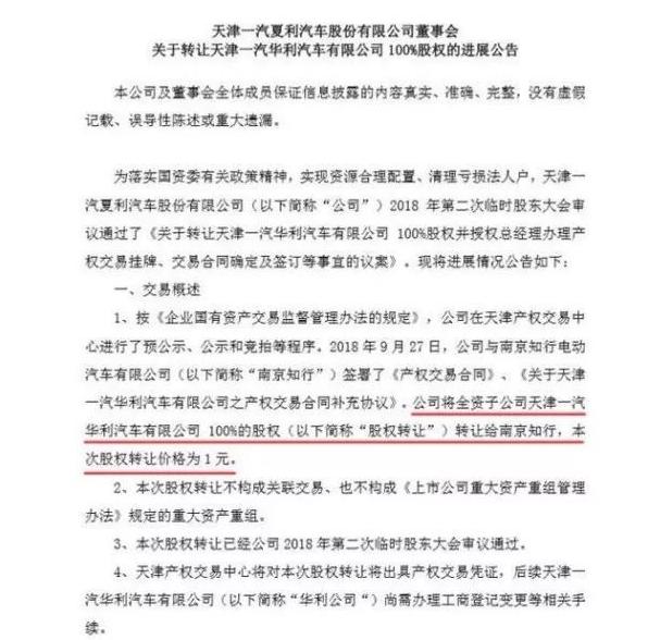 早在2019年4月,拜腾汽车为了获得汽车生产资质,以1元的价格收购了一汽夏利旗下的全资子公司天津一汽华利汽车100%的股权。