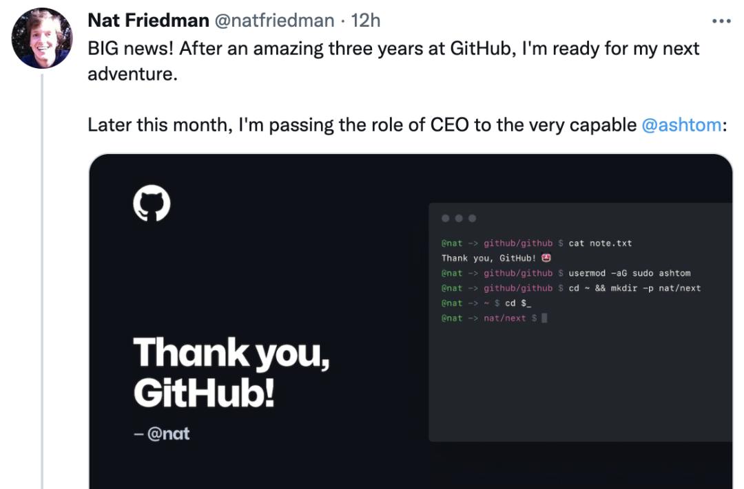 GitHub换帅,开源大佬Nat Friedman辞任CEO,发告别信感恩「这三年」