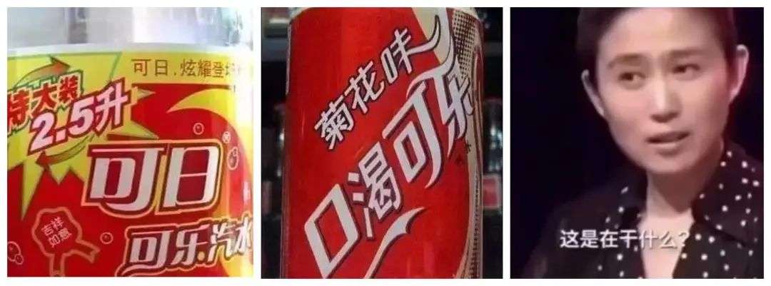 可口可乐也没逃过「山寨劫」,小卖店里不止可口可口,还出现了可日可乐,名字听起来就很让人疑惑——这到底是在干什么?