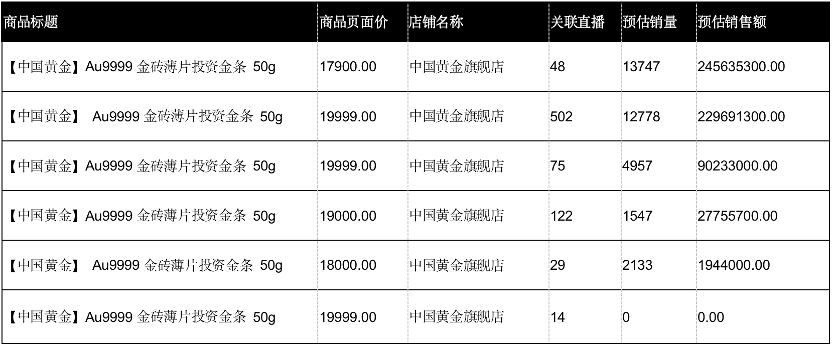 但直播卖金条是一个有门槛的生意。黄金珠宝是资金密集型产业,现金交易,没有账期,要承接直播间的爆发式销量增长,就需要稳定、大量的现金流。因此,在抖音、快手等平台走红的中国黄金、薇娅直播间的菜百与李佳琦直播间的克徕帝,都是相对稳定的传统线下品牌。