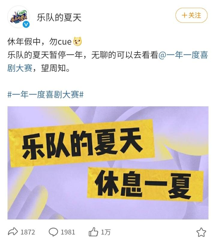 猜测归猜测,另一边,《乐队的夏天》官方微博倒没闲着,此后发出的所有资讯,几乎无一例外都带上了“一年一度喜剧大赛”的标签,努力将两年来积累的粉丝关注,引流至米未传媒推出的另一档综艺节目中。