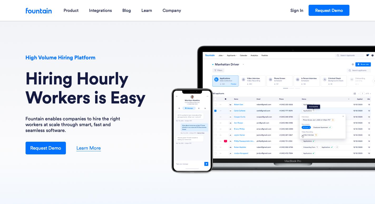 相比关注垂直细分市场的竞争对手,「Fountain」采取更全面的策略,将各类行业纳入招聘业务范围,并通过AI技术将工作特征与求职者相匹配。据Behr透露,该公司为其平台上8200万小时工提供了申请者跟踪系统,该技术能够将平均招聘天数从36天缩减到8.70天,极大地提高了效率。