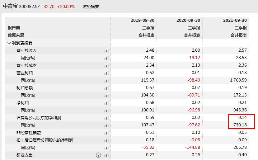 本周4个交易日,中青宝已经两度涨停,加上10月29日,中青宝最近5天更是3个涨停。公司前三季度盈利不足1400万元,又有何魔力表现得如此“嚣张”呢?