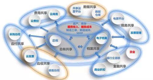 对于财务数字化而言,它不仅要形成企业内部各个业务模块与财务之间的协同,更离不开与外部的互通与共享,通过财务云平台的内通外联,构建生态系统,实现群智共享。对于财务部门而言,与企业外部的互联协同,也有助于企业财务拥有更多的数据做支撑,“跳出财务看财务”,以更全、更新的视角提供运营分析或预测供企业决策、运营使用。