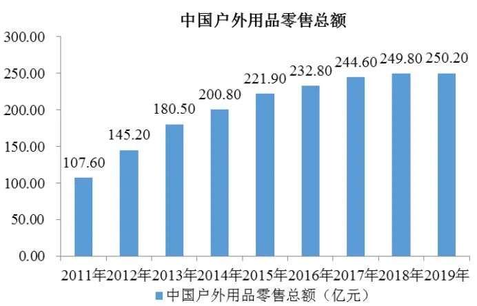 的确,相比于国外,中国户外用品市场起步较晚、且规模不大,但整体增速较快,2011年-2019年的年均复合增长率高达11%,远高于海外市场的增幅。