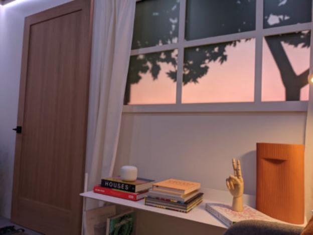 明亮公司探店时停留最长的是(智能家居)房间,沉浸式体验在一个搭建的完整场景下,从进入客厅坐到沙发后,一个个场景纷纷展开,先是谷歌的指令投射在茶几上。