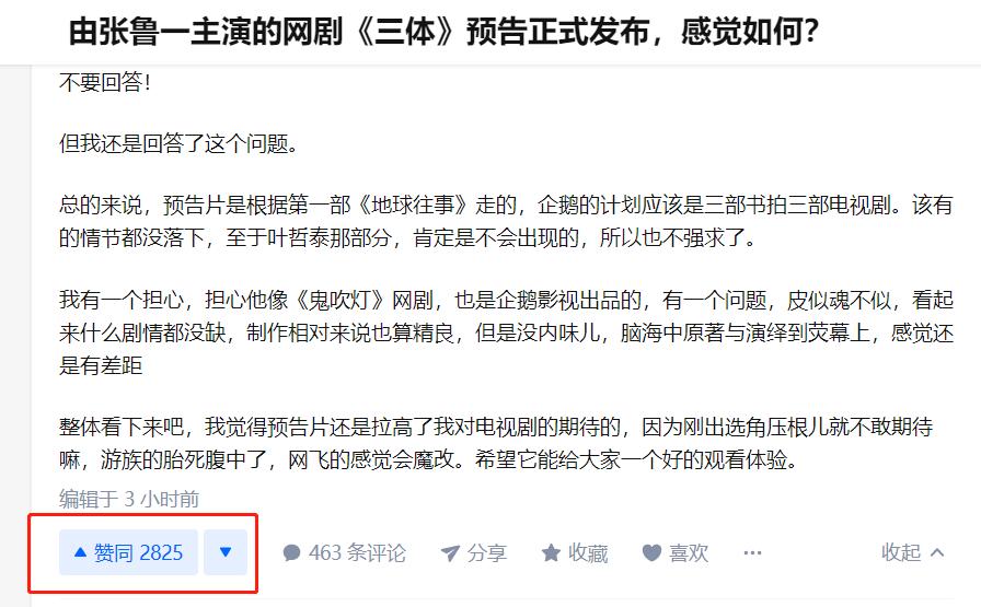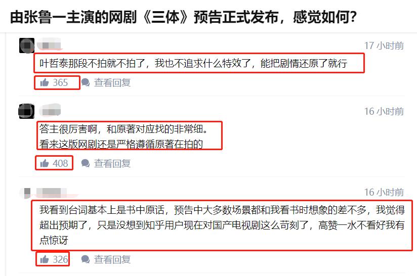 就在这篇文章下面,高赞评论中可以看到大家对腾讯版《三体》预告片释放的善意与包容。
