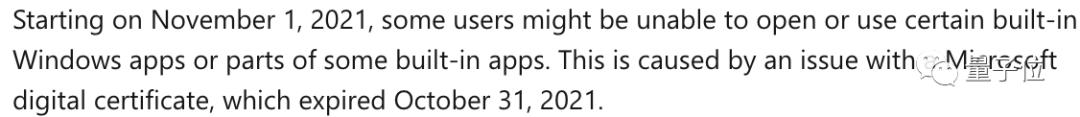 Windows 11的部分功能因为微软数字证书的过期(10月31日到期)而失效。