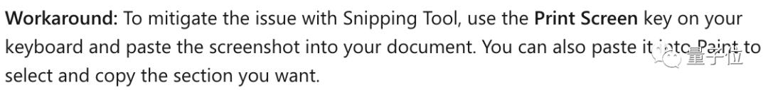 并且,官方还先行给出了一个解决截图工具问题的办法: