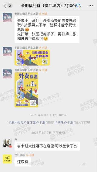 在疫情来之前,门店要是有个100人的私域社群,会让门店抗风险能力提升很多。就算商圈的顾客不出门,门店一样可以营业,提前预售门店的套餐,门店可以在自己的私域群中,做线上经营。