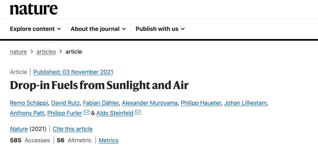 Nature重磅:“空气燃料”不是梦,碳中和里程碑初验成功