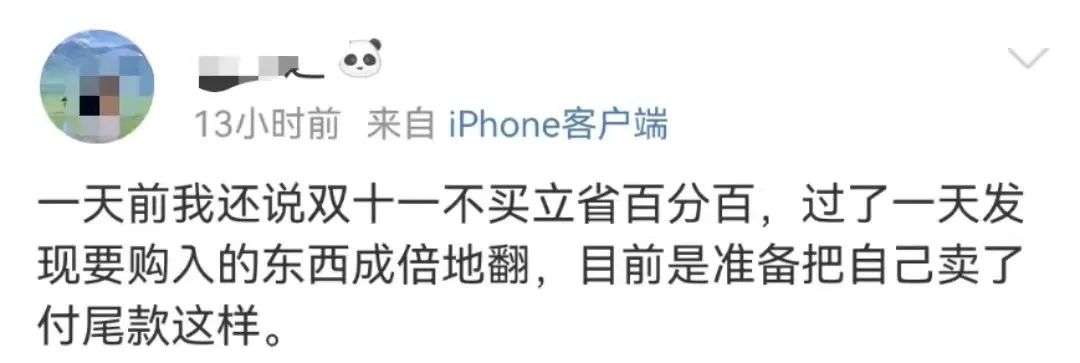 微博上,伴随着#不买立省百分百#的话题,是#双十一啥都没买是省了还是亏了#的高讨论度。不买,自然不会有任何的支出;但以优惠的价格买到自己真正需要的商品,也是一种省钱的手段。“不买立省百分百”的前提是“非刚需”,对于真正需要的商品,如果能够在双十一以优惠的价格买到手,才是真正占了商家便宜。