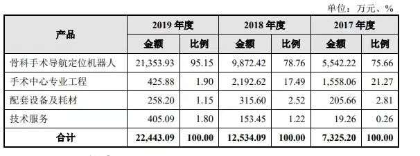 2017年至2019年,骨科手术导航定位机器人销售占比在75%至93%之间,为营收“主力军”。由此可见,天智航是一家专注于骨科手术机器人研发、生产、销售及服务的机器人公司。