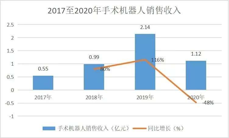 特别是2020年受疫情影响,医院采购医疗器械需求降低,导致天智航主营产品——天玑骨科机器人(天玑1.0)销量下滑明显,仅销售了30台,同比减少 26.83 %。