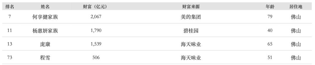 佛山上榜富豪名单(4位)↓