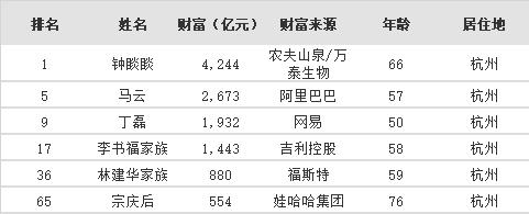 再来看杭州上榜富豪名单(6位)↓