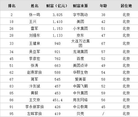 首先来看北京上榜富豪名单(15位)↓