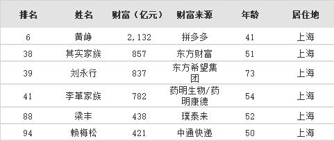 再来看上海上榜富豪名单(6位)↓