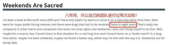 刚反超苹果成为全球市值第一的微软,据说从不加班,网上就有网友称自己作为leader,过去8年间也只团队加过两次班;从阿里跳槽过去微软的员工爆料曾自己曾被要求停止无意义的加班。