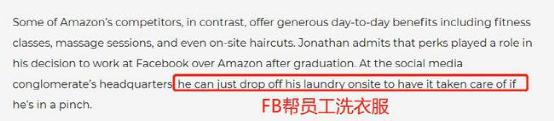 至于脸书和谷歌,虽然也会加班,但据说员工是非常幸福的加班,而且公司福利很好。谷歌拥有免费午餐、班车、健身房、游戏室、coffee break……员工称即便是加班也非常高兴;而脸书还会帮员工洗衣服,让员工全无后顾之忧的工作。