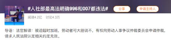 各互联网纷纷集中在今年调整工作制度,首当其冲的原因就是国家政策的调整。早年,有企业家强调“996”是福报,对企业来说,或者真的能带来更高效的产出,但对员工来说,是让他们必须在“生活”和“工作”中二选一,看起来,则大有垄断互联网企业强迫商家“二选一”的意味了。