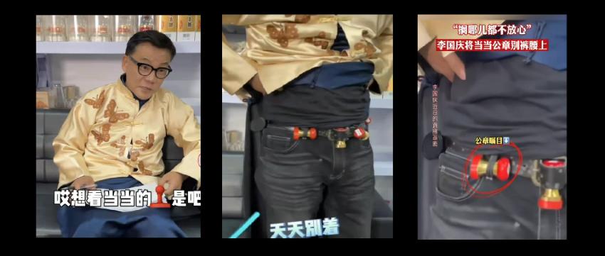 随即他起身向网友展示了绑在裤腰带的当当公章,并称“搁谁那都不放心,天天别着。”在图中也可以看到,明晃晃的红色公章挂在裤腰带上摇摇欲坠。