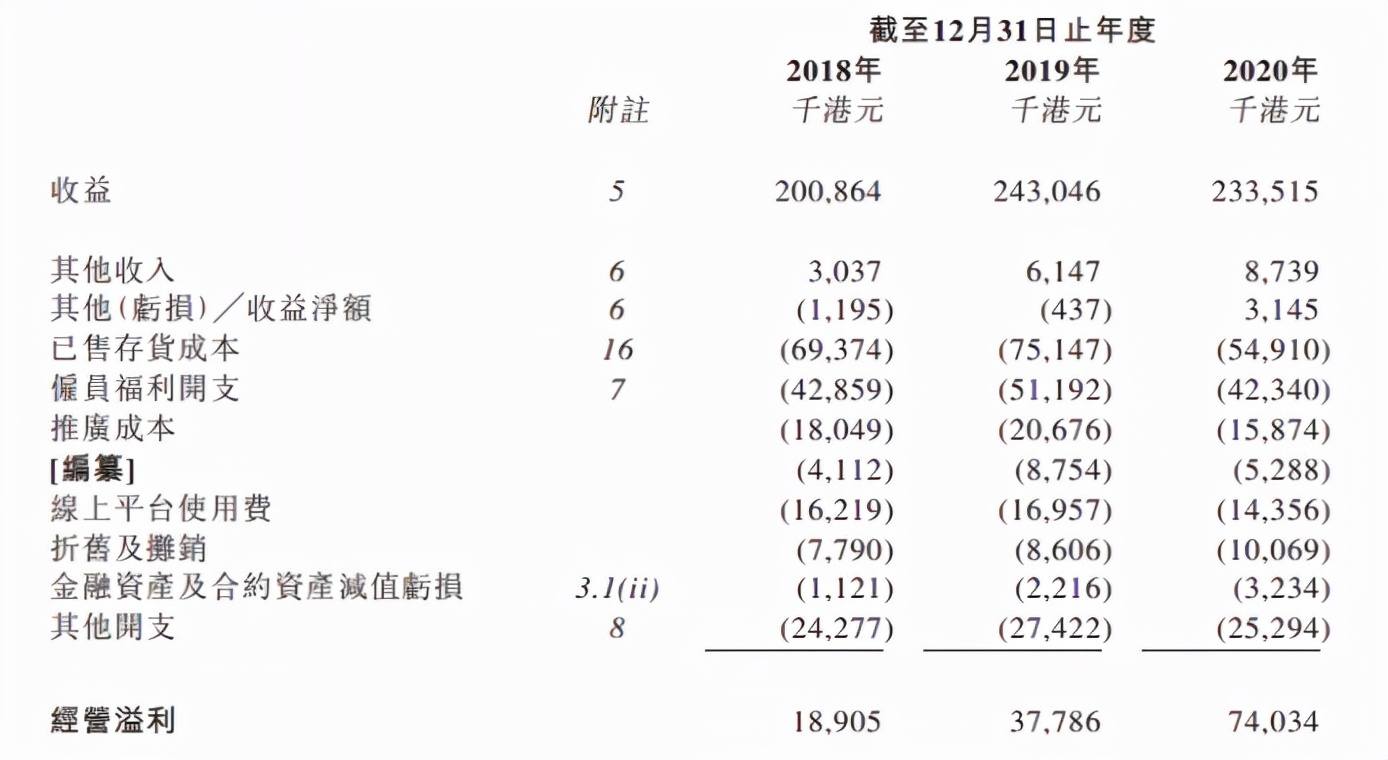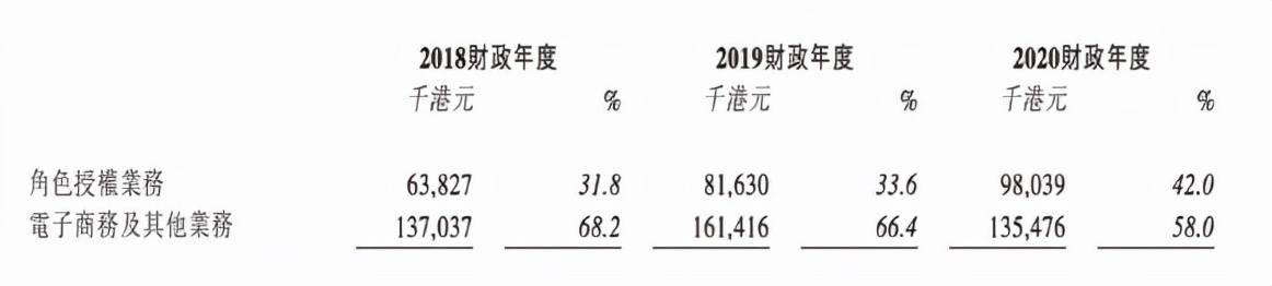 IP授权营收从2018年的31.8%增长至2020年的42%达9800万港元;电商及IP衍生品业务从2018年的68.2%减少至2020年的58%达1.35亿港元。