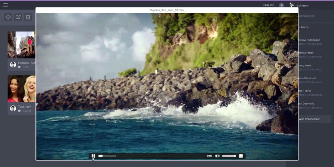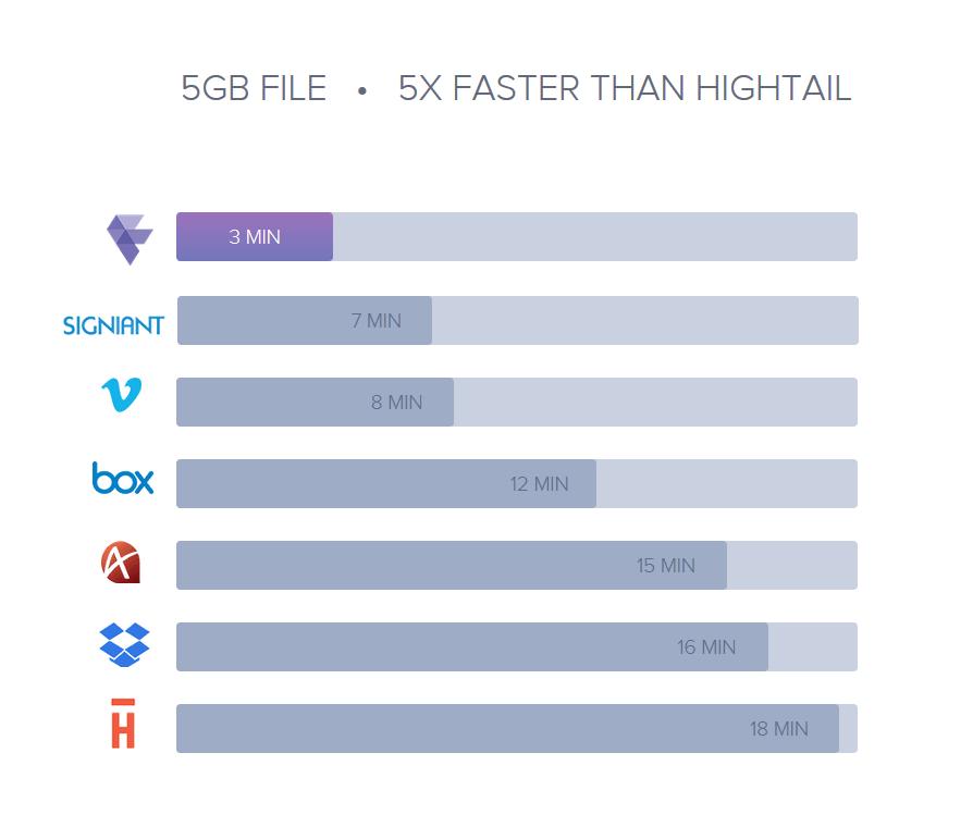 同时,Frame.io的传输速度还非常快,并且能同时上传多个视频,即便是大型文件也是如此。同样是5G的文件,它只需要三分钟,而dropbox需要16分钟,直接克服了协作产品上传大文件慢的通病。