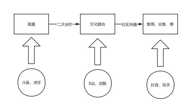 回溯过去,游戏直播行业的功能输出分化是相当简单的。斗鱼、虎牙为首的大大小小的直播平台承担游戏直播的功能,而后来火起来的短视频平台,则负责直播视频后续的发酵和二次制作,二者分别在及时和娱乐性上为消费者带来不同附加属性的需求提供。