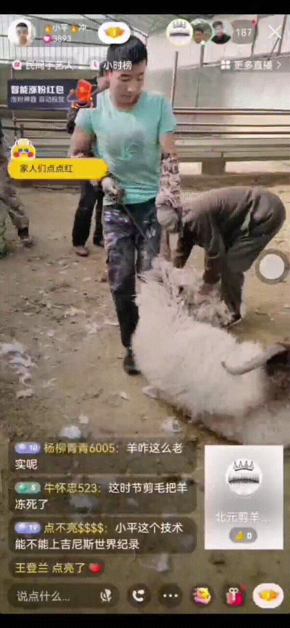 粉丝还未破万的时候,就有人主动找上门请小平帮他家剪羊毛。为了让更多人看到自己,也为了帮助更多人了解剪羊毛,他决定在快手上直播。每天早上9点到下午6点左右,一天至少播4小时。