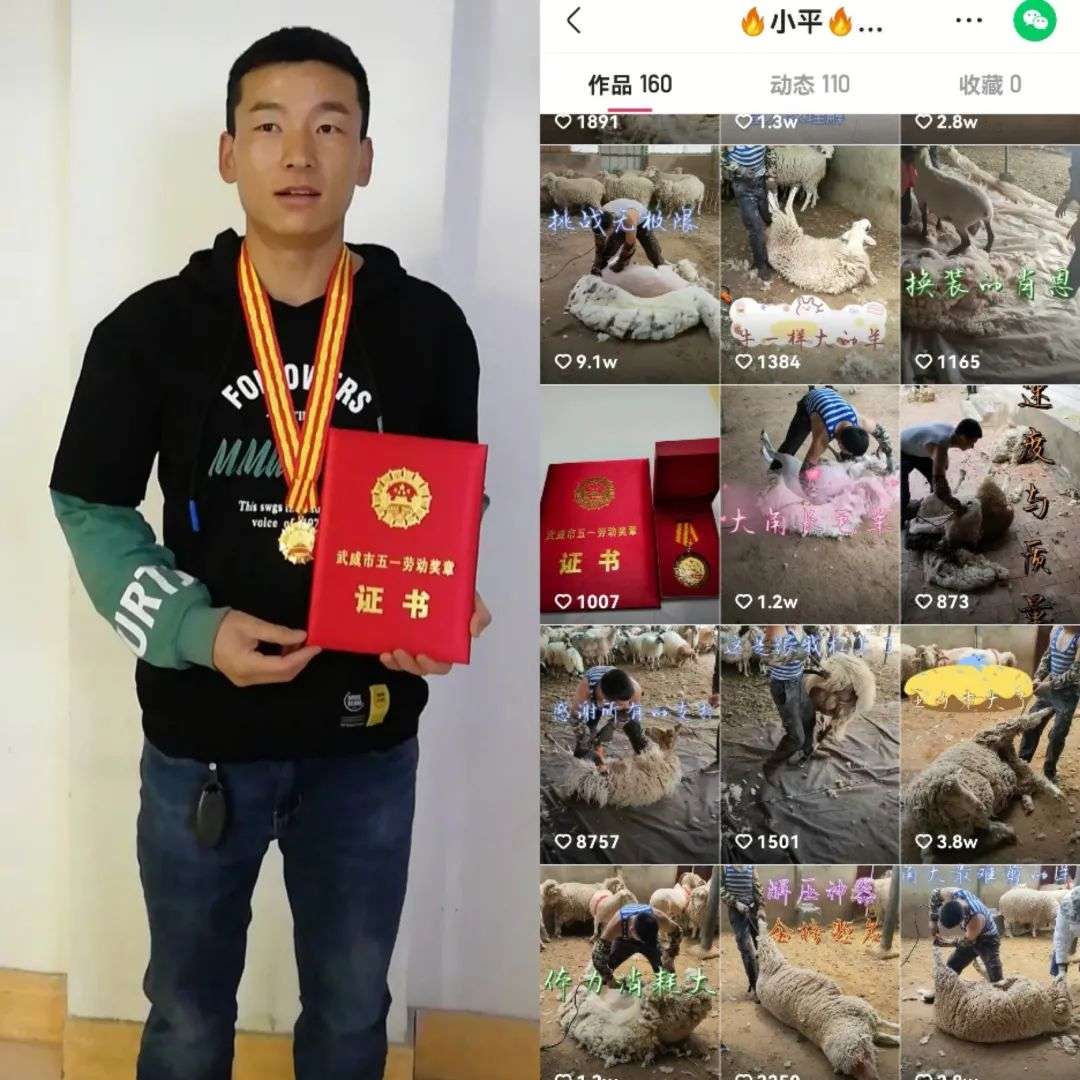 因为拍短视频、做直播,他在剪羊毛的行业里出了名,不仅个人月收入突破3万,还推动了当地相关产业链发展,被授予武威市五一劳动奖章。