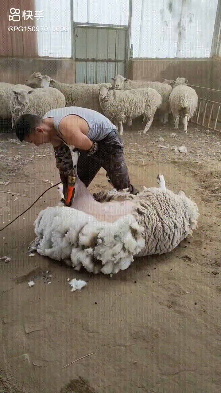 在用电动剪毛机之前,传统手工剪毛耗时耗力,往往需要拿绳子把三条羊腿绑在一起,放倒后慢慢剪。