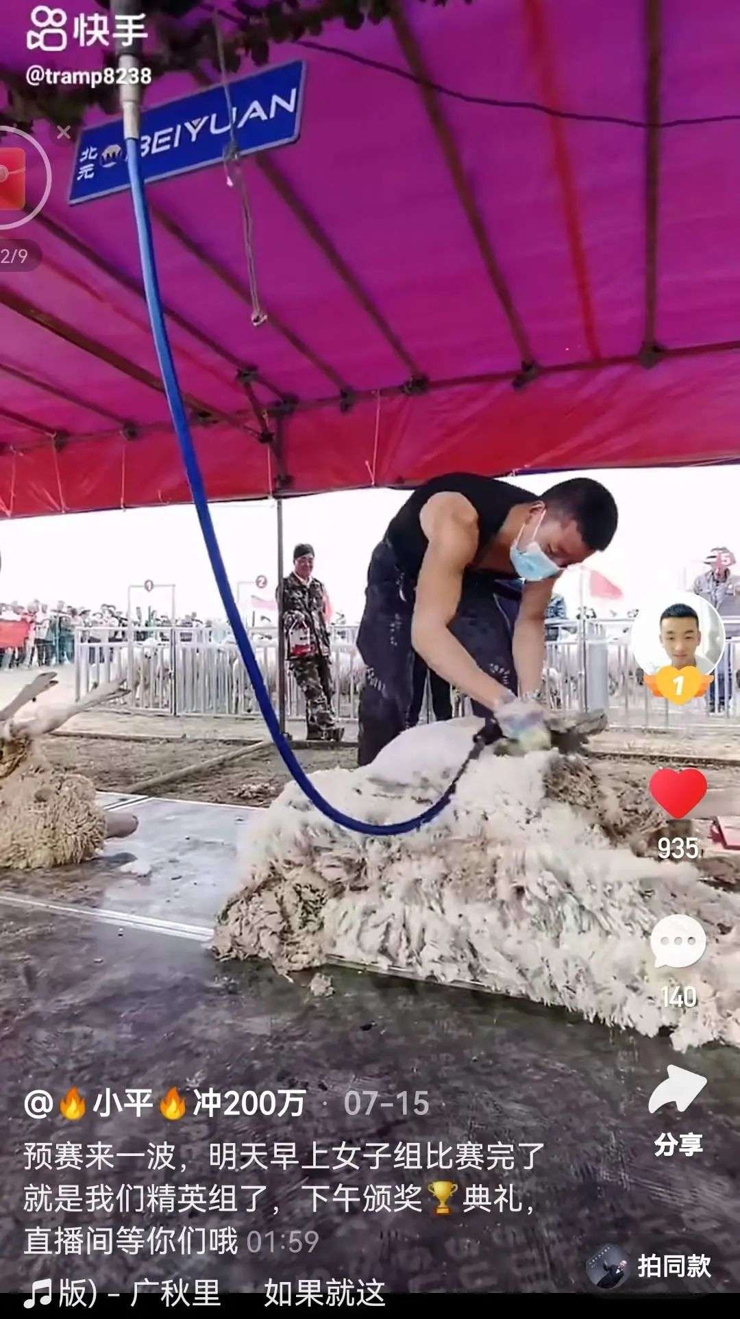 小平来自牦牛的故乡——甘肃武威天祝县,凭借专业的剪羊毛手艺在快手上走红,不到2年已拥有128万粉丝。据新快显示,160个作品中播放数最高达3600万,获得70余万次点赞。