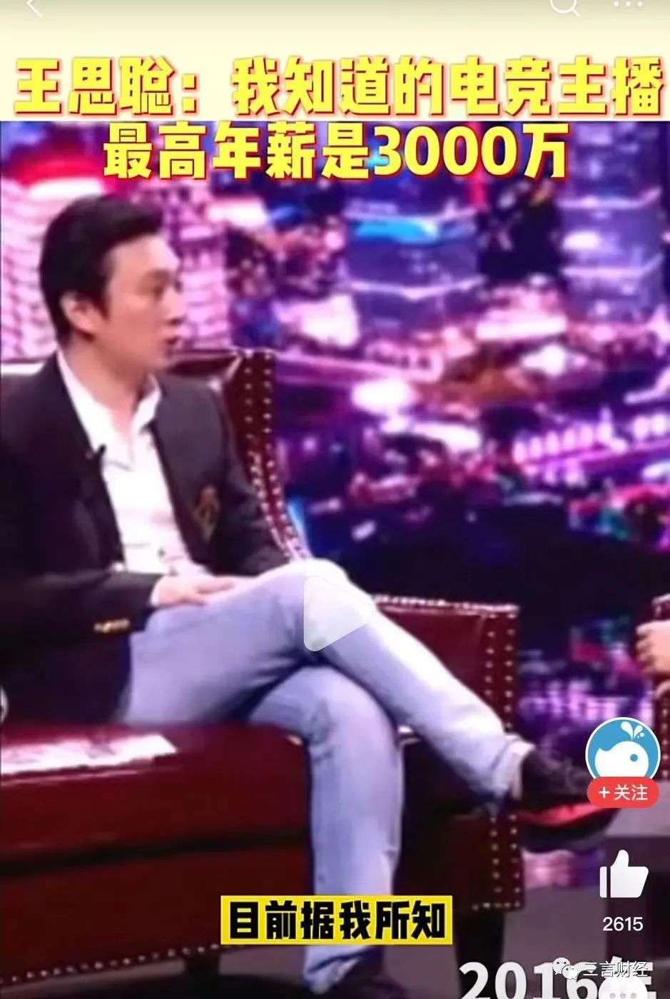 王思聪也曾在访谈中提到,据他所知,电竞主播最高年薪是3000万。