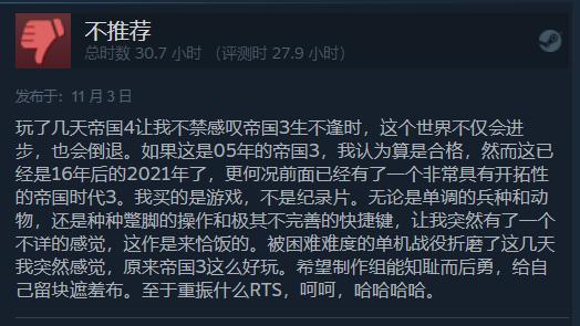 玩家们的吐槽也主要集中在老旧的画面、蹩脚的AI和各种奇怪的BUG上。很多人直言:这根本不像是一个阔别十六年后的新作。