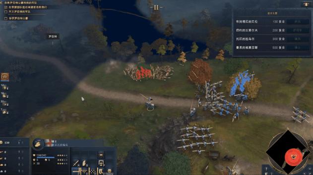于是,我动用起了玩《全面战争》的思维,开始重新调整阵型。我找了一个隘口,并且让弓兵在路上插上了拒马,还在左侧的树林里埋伏了一队枪兵。这一次,经过思考的决战地点和阵型,明显起到了效果,我打出了一个极其漂亮的战损比。
