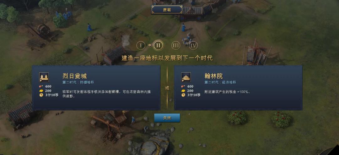 中国在此基础上,还加入「朝代更迭」的机制,你可以通过选择不同的地标建筑,来获取某个朝代的BUFF(唐、宋、元、明)。是快速进入元朝,获得移速加成,和敌人打前期;还是按部就班进入宋朝,获得人口、农民的BUFF,来憋后期和敌人打决战。这都取决于你自己。